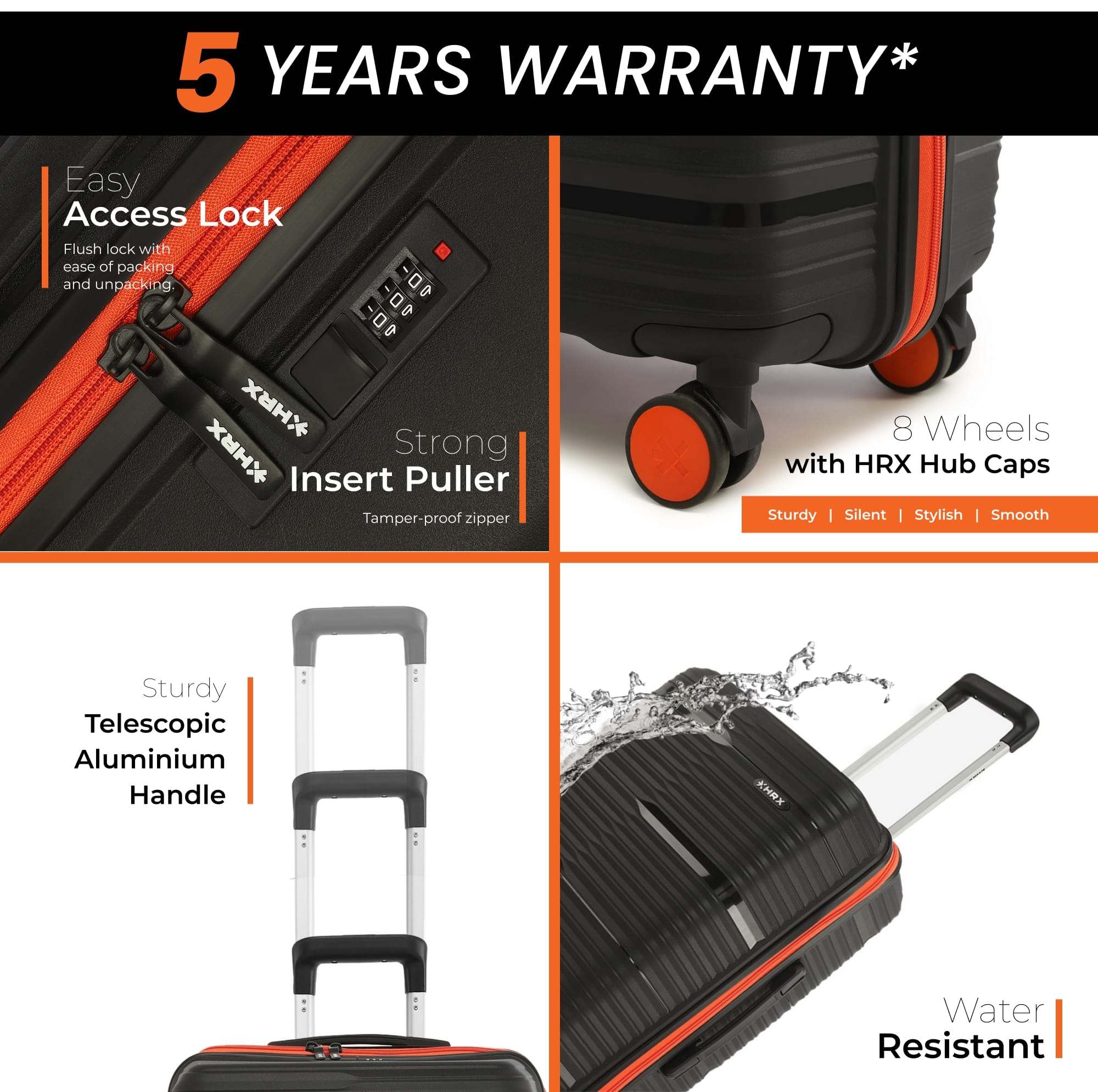 HRX by Hrithik Roshan Hard Body Set of 2 Luggage 8 Wheels - Glide