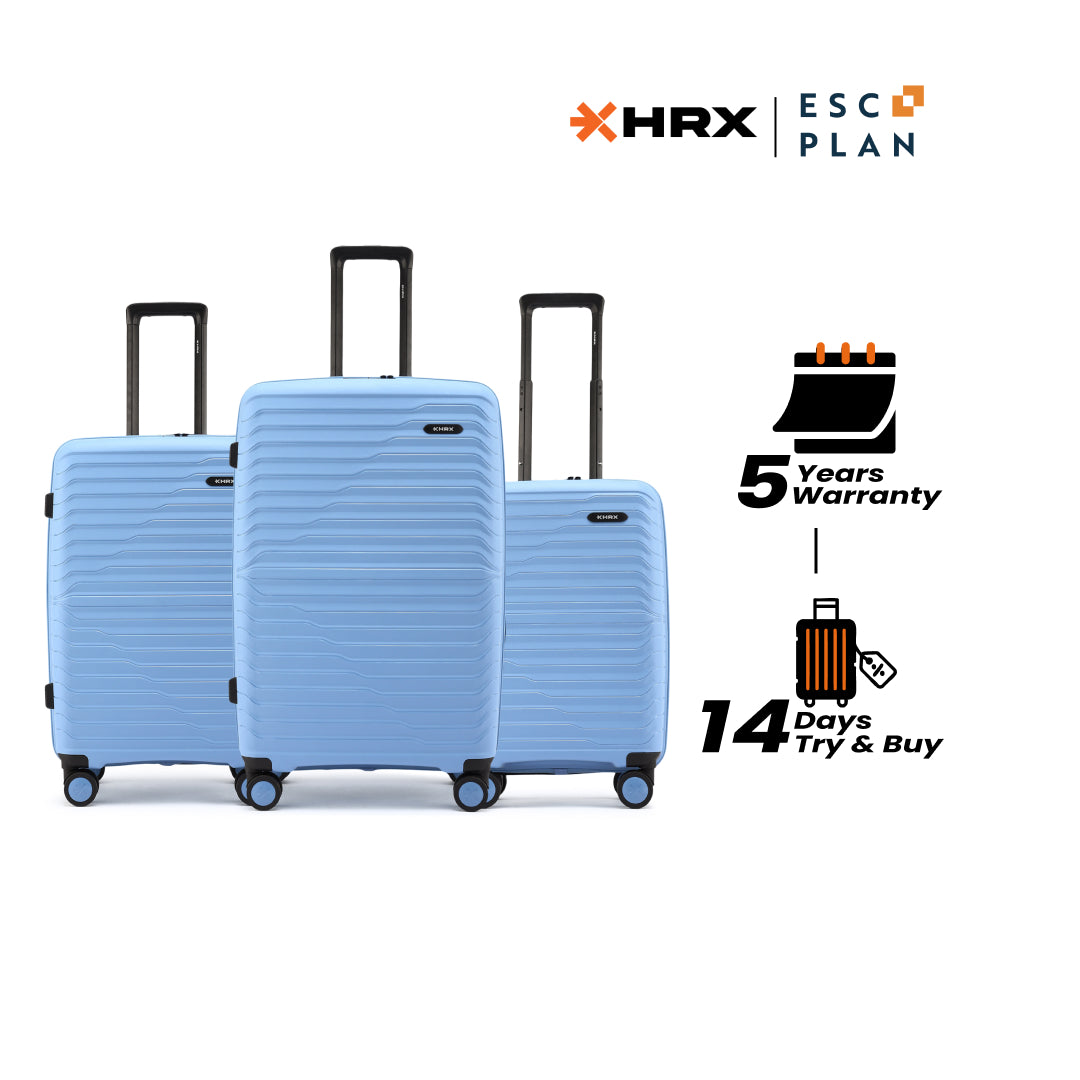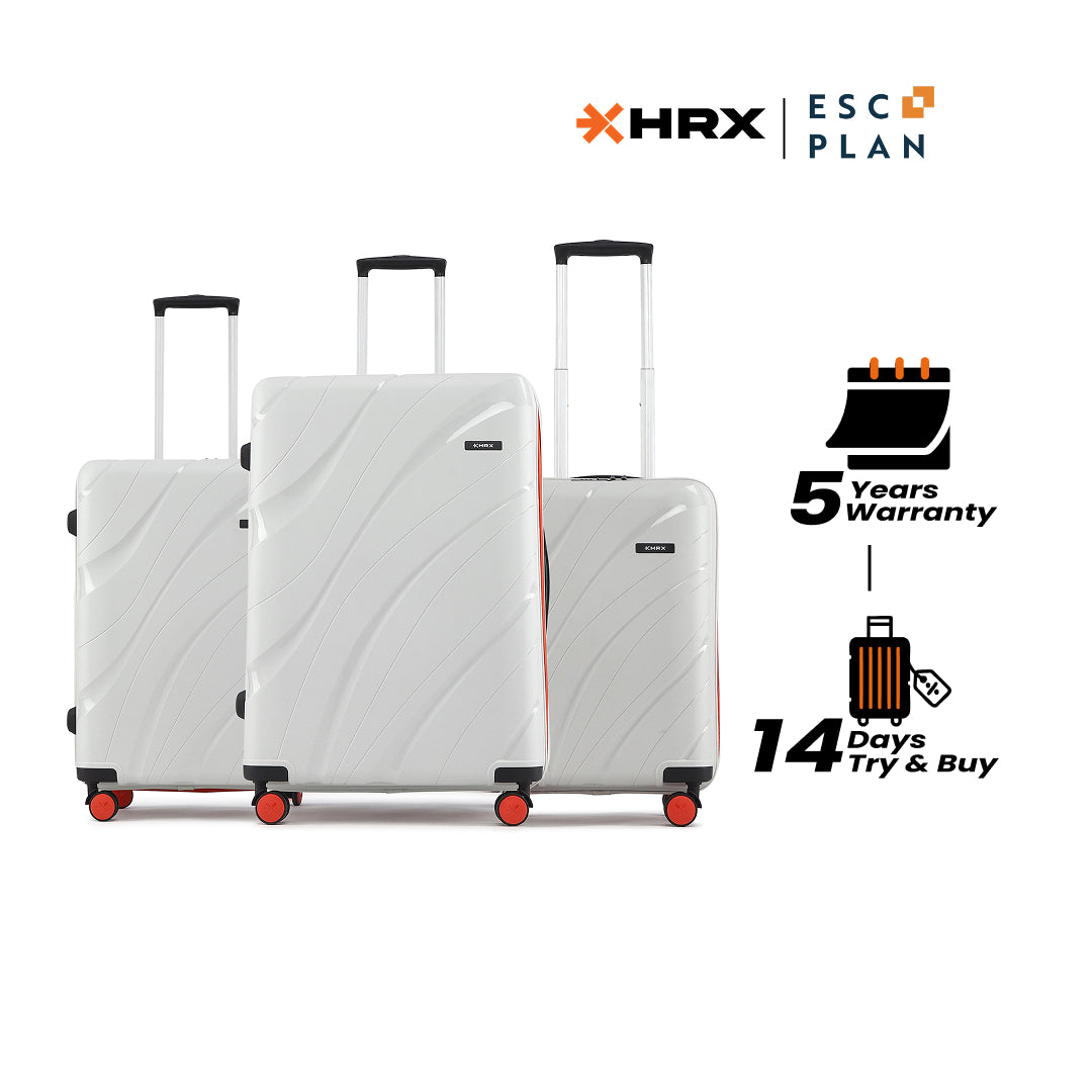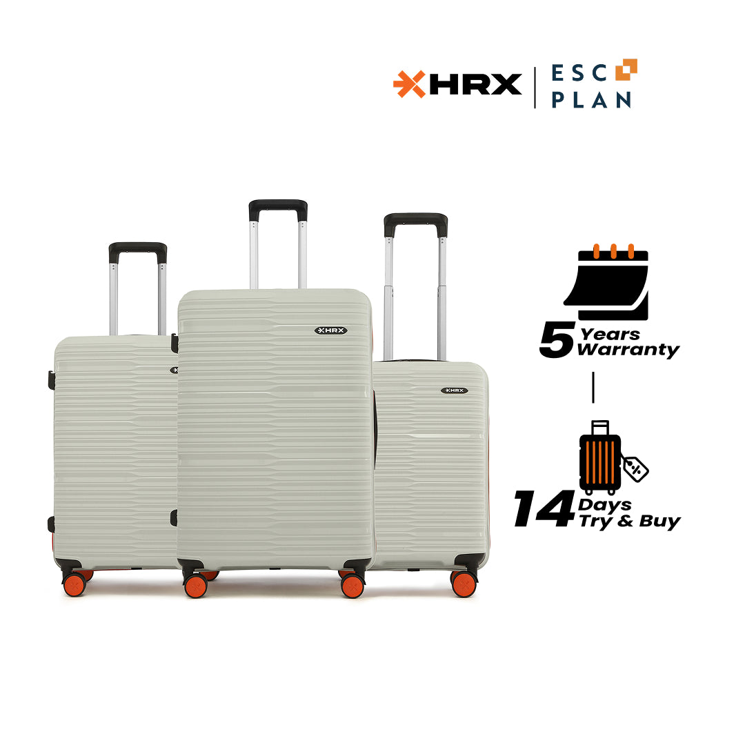 HRX by Hrithik Roshan Hard Body Set of 3 Luggage 8 Wheels - Helium